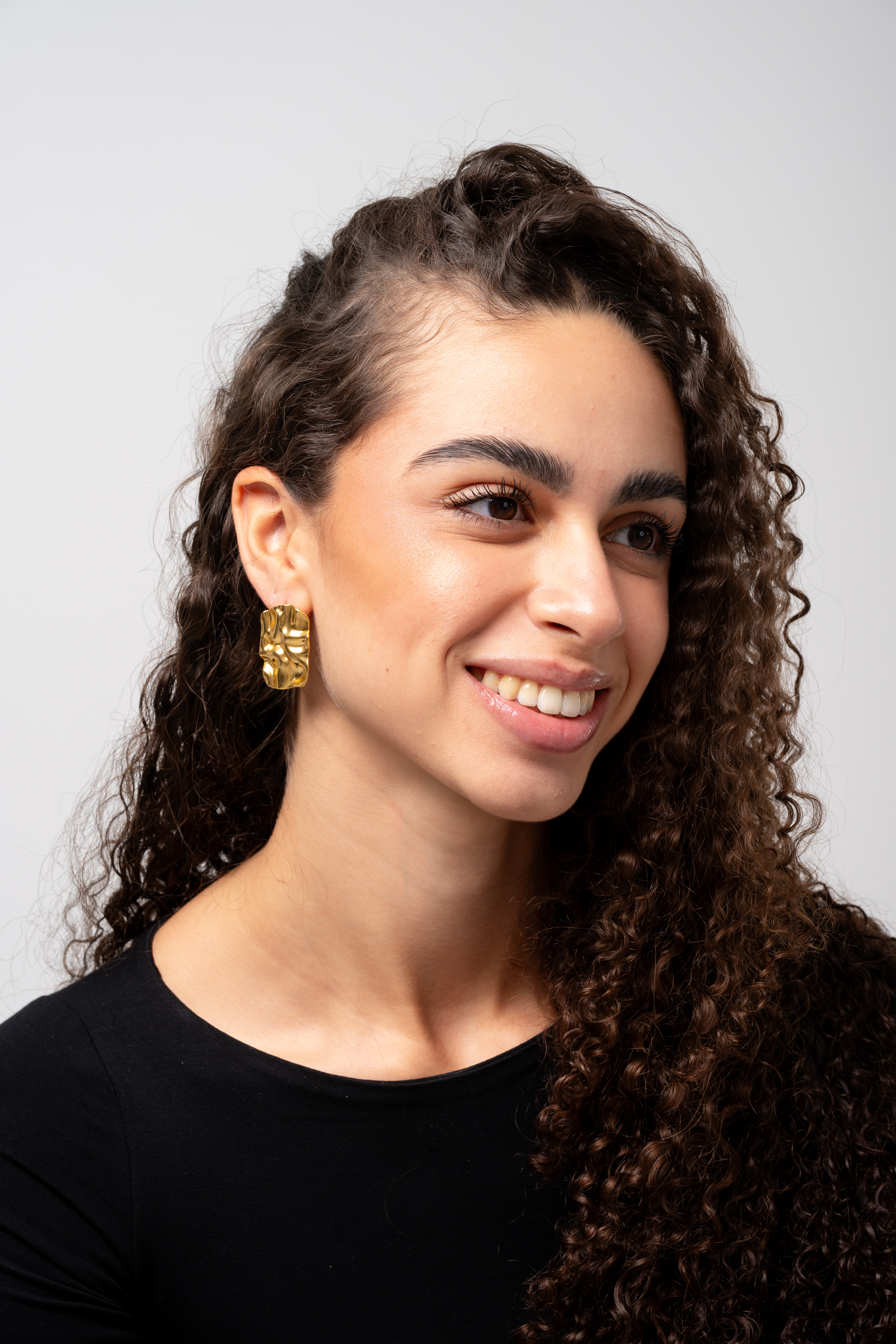 Pierścionki Aura Gold i Vega Gold dodają charakteru przy dłoniach, a kolczyki Ava Gold podkreślają twarz.