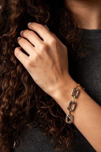 - Wyraziste, geometryczne ogniwa nadają bransoletce nowoczesny i stylowy charakter.