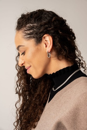 Elen Silver świetnie prezentują się przy jednolitych kolorach - czerni, bieli, granacie czy szarości. Dodają charakteru basicowym stylizacjom, a eleganckim zestawom nadają świeżego, rozświetlającego akcentu. Możesz nosić je solo albo zestawić z delikatną srebrną bransoletką Aju, tworząc spójny, harmonijny komplet.