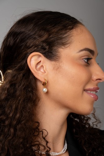 Auriel Gold to złota wersja klasycznych kółek z perłą - proste, eleganckie i ponadczasowe. Zawieszona, idealnie okrągła perła dodaje im delikatnego połysku, a całość wygląda lekko i nowocześnie.