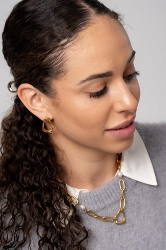 Iris Gold to połączenie klasyki z nowoczesną formą. Złoty, geometryczny łańcuch i delikatne perły tworzą duet, który łączy elegancję z odrobiną odwagi. To naszyjnik, który przyciąga uwagę subtelnym blaskiem i wyjątkową formą.