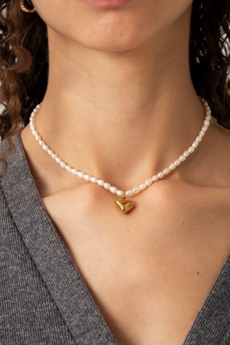 Naszyjnik z pereł z pozłacaną zawieszką w kształcie serca - MAELLE GOLD