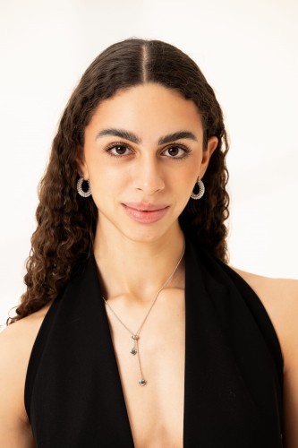Talia Silver to elegancki naszyjnik o nowoczesnej, regulowanej formie, który subtelnie podkreśla linię szyi i dekoltu. Delikatny srebrny łańcuszek zakończony dwiema zawieszkami w kształcie serca tworzy lekki, dynamiczny efekt – biżuteria porusza się przy każdym kroku i przyciąga wzrok.