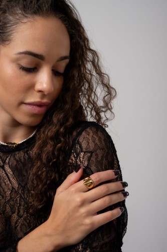 Aster Gold Ring to masywny, minimalistyczny sygnet, który łączy w sobie prostotę i wyrazisty charakter.