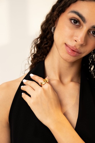 Pierścionek pozłacany o rzeźbiarskiej, organicznej formie ze stali szlachetnej - Nyx Gold