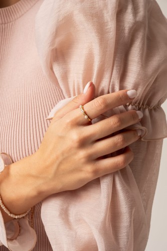 Nomi Gold to delikatny pierścionek, który łączy klasyczne perły z subtelnym blaskiem cyrkonii. Lekka, elegancka forma sprawia, że jest to biżuteria idealna na co dzień, ale wystarczająco wyjątkowa, by towarzyszyć Ci także przy ważniejszych okazjach.