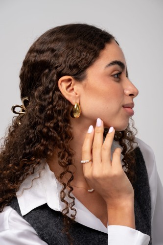 W komplecie z perłowymi kolczykami lub subtelną bransoletką, tworząc spójny zestaw.
